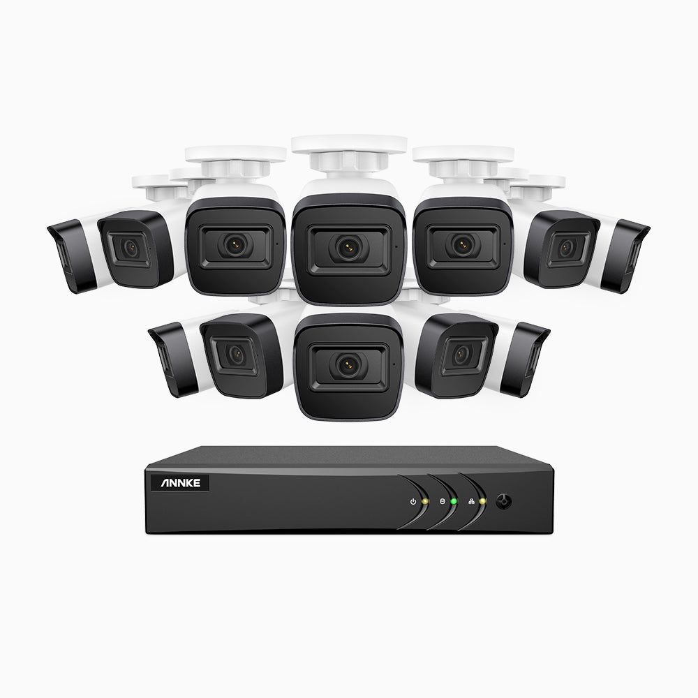 EL200 - 1080p 16 Channel Outdoor Wired Security CCTV System with 12 Cameras, 3.6 MM Lens, Smart DVR with Human & Vehicle Detection, 66 ft Infrared Night Vision, 4-in-1 Output Signal, IP67