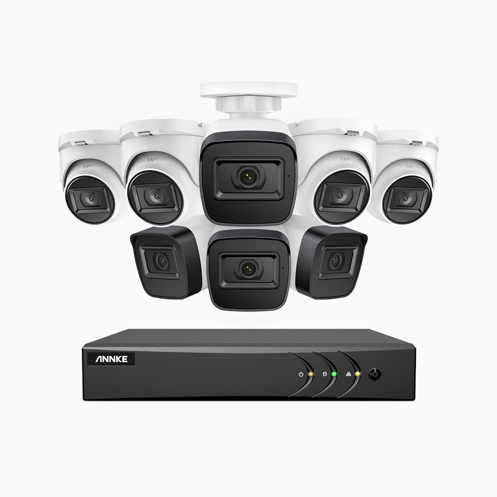 EL200 - 1080p 16 Channel Outdoor Wired Security CCTV System with 4 Bullet & 4 Turret Cameras, 3.6 MM Lens, Smart DVR with Human & Vehicle Detection, 66 ft Infrared Night Vision, 4-in-1 Output Signal, IP67