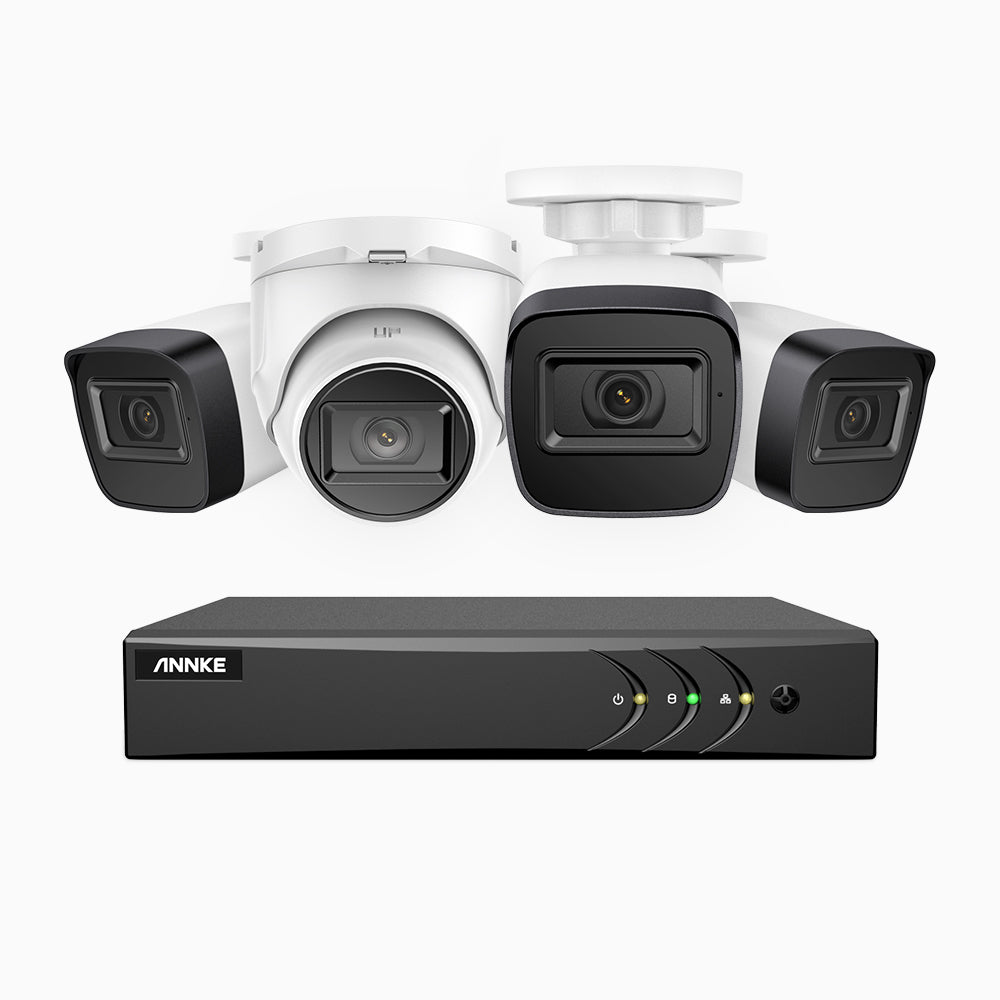 EL200 - 1080p 4 Channel Outdoor Wired Security CCTV System with 3 Bullet & 1 Turret Cameras, 3.6 MM Lens, Smart DVR with Human & Vehicle Detection, 66 ft Infrared Night Vision, 4-in-1 Output Signal, IP67