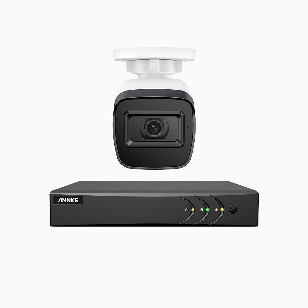 EL200 - 1080p 8 Channel Outdoor Wired Security CCTV System with 1 Camera, 3.6 MM Lens, Smart DVR with Human & Vehicle Detection, 66 ft Infrared Night Vision, 4-in-1 Output Signal, IP67