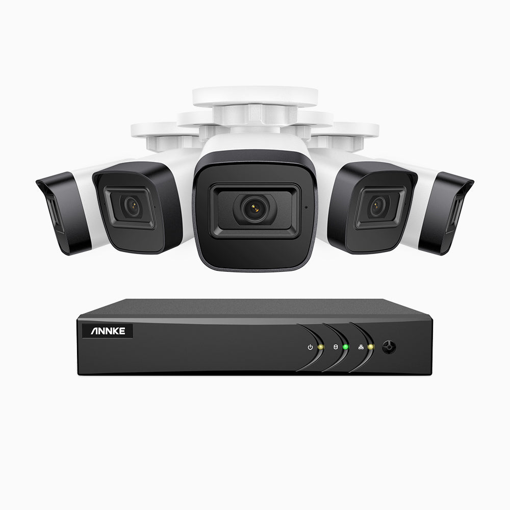 EL200 - 1080p 8 Channel Outdoor Wired Security CCTV System with 5 Cameras, 3.6 MM Lens, Smart DVR with Human & Vehicle Detection, 66 ft Infrared Night Vision, 4-in-1 Output Signal, IP67