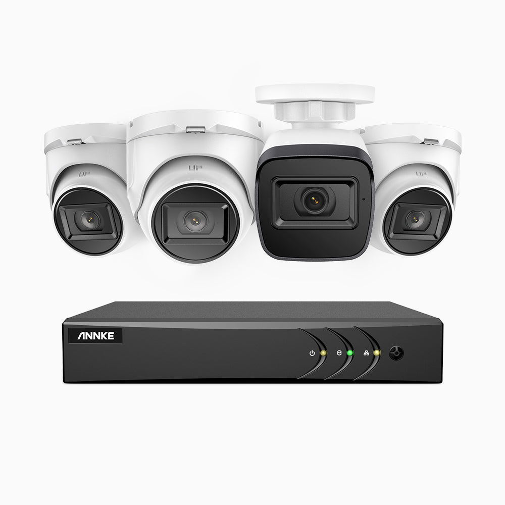 EL200 - 1080p 8 Channel Outdoor Wired Security CCTV System with 1 Bullet & 3 Turret Cameras, 3.6 MM Lens, Smart DVR with Human & Vehicle Detection, 66 ft Infrared Night Vision, 4-in-1 Output Signal, IP67