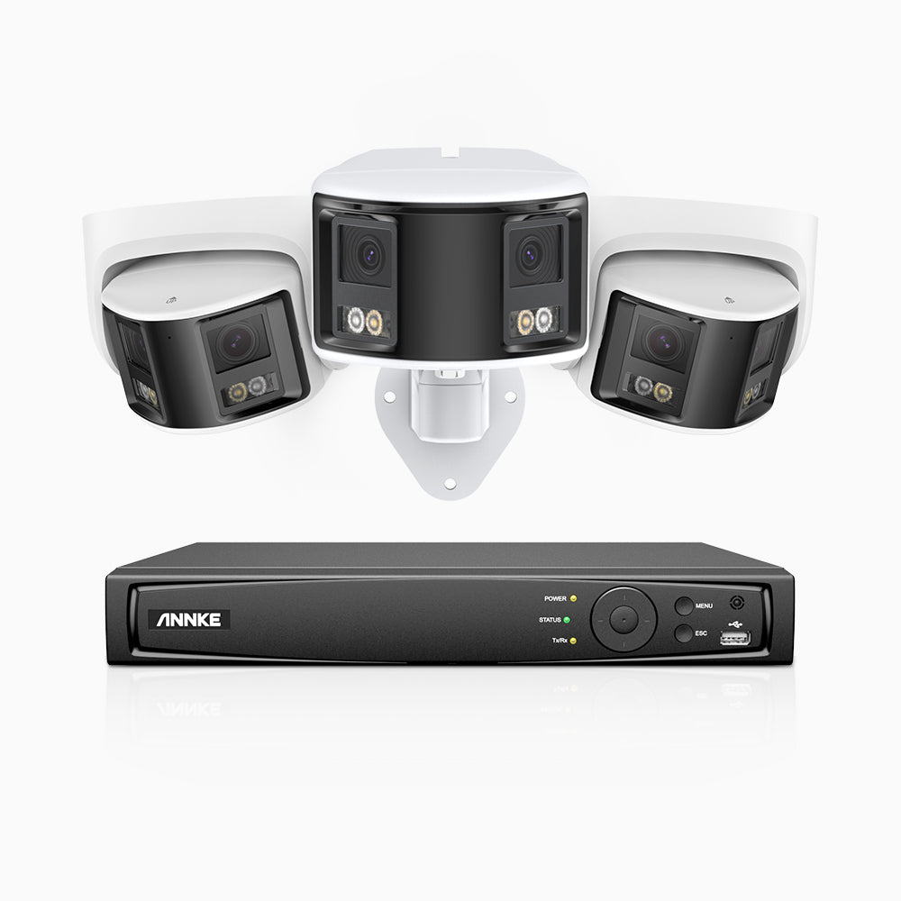 FDH600 - 8 Channel PoE Security System with 1 Bullet & 2 Turret Dual Lens Cameras, 6MP Resolution, 180° Ultra Wide Angle, f/1.2 Super Aperture, Built-in Microphone, Active Siren & Alarm, Human & Vehicle Detection