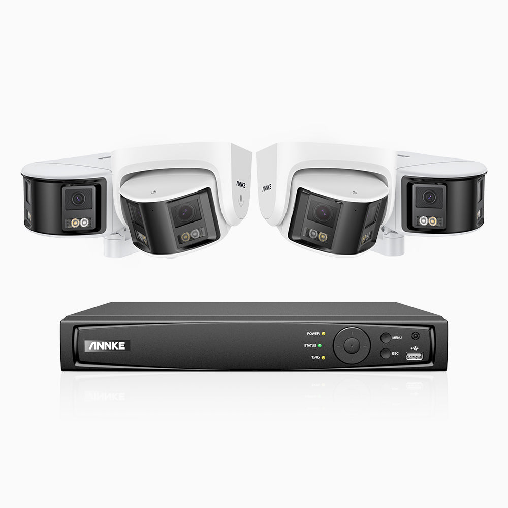 FDH600 - 8 Channel PoE Security System with 2 Bullet & 2 Turret Dual Lens Cameras, 6MP Resolution, 180° Ultra Wide Angle, f/1.2 Super Aperture, Built-in Microphone, Active Siren & Alarm, Human & Vehicle Detection