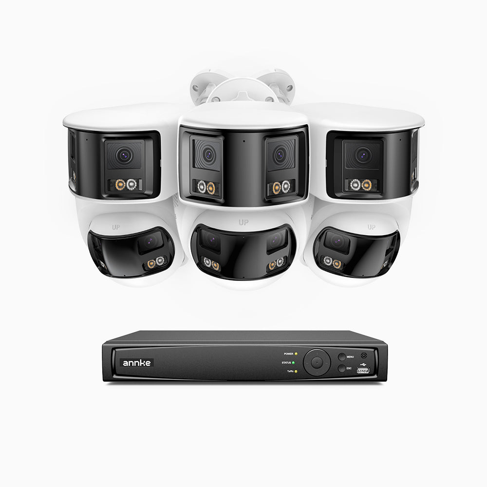 FDH800 - 8 Channel PoE Security System with 3 Bullet & 3 Turret 8MP UHD Dual Lens Cameras, 180° Panoramic View, Smart Dual Light Night Vision, Two-Way Audio, Active Siren & Alarm, Human & Vehicle Detection, IP67