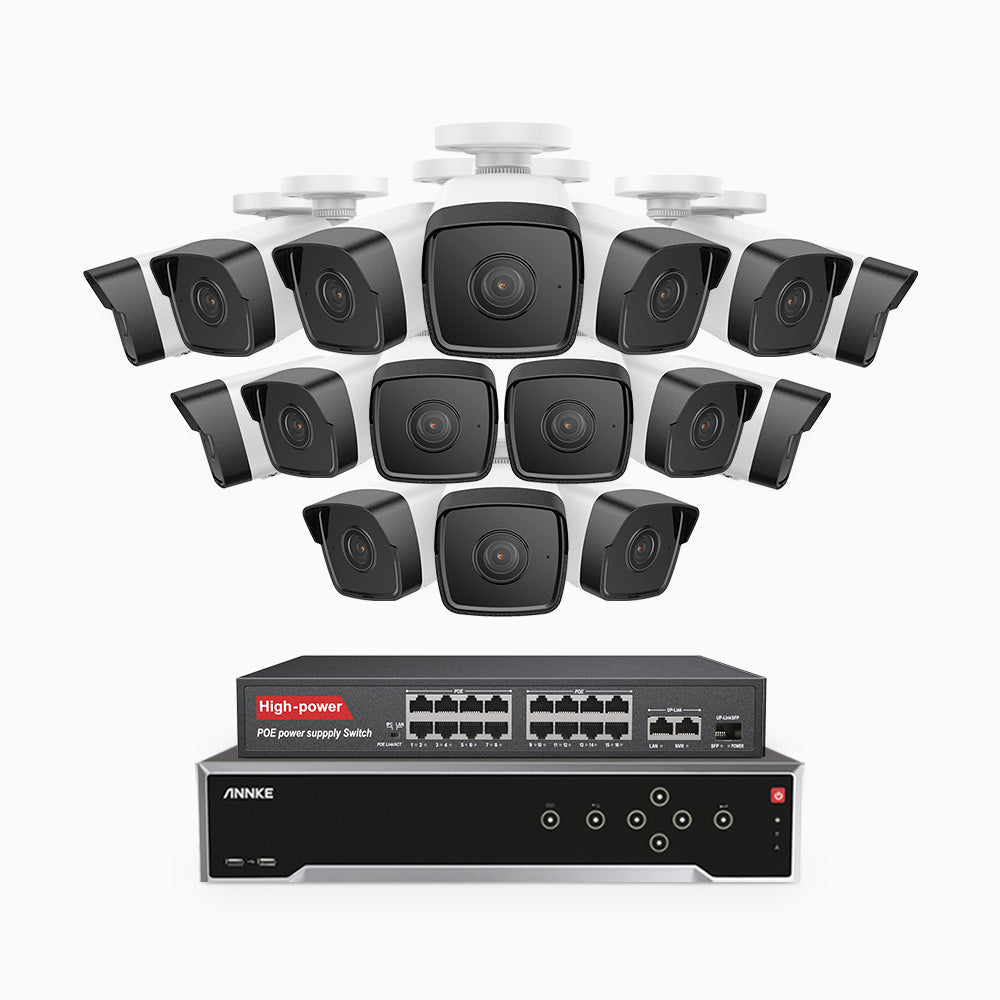 H500 - 3K 32 Channel 16 Cameras PoE Security System, EXIR 2.0 Night Vision, Built-in Mic & SD Card Slot, Works with Alexa, 16-Port PoE Switch Included ,IP67 Waterproof, RTSP Supported