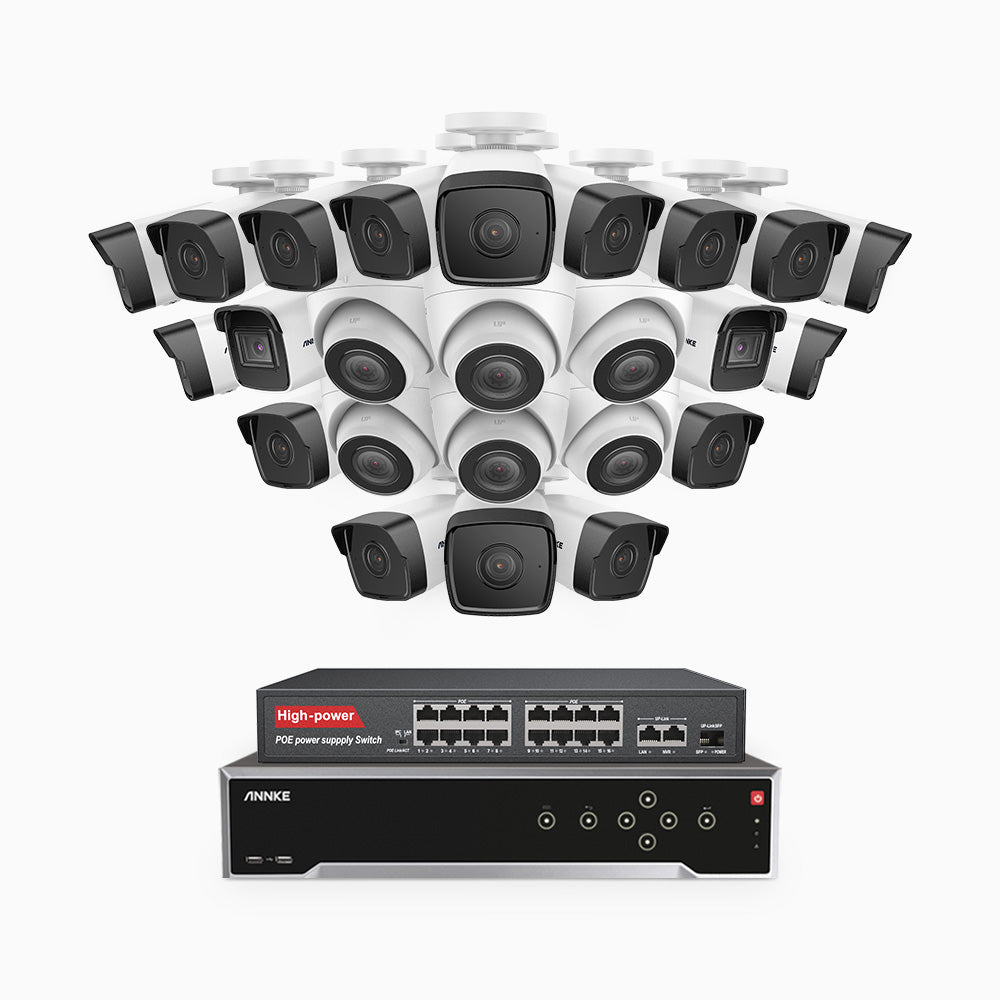 H500 - 3K 32 Channel PoE Security System with 18 Bullet & 6 Turret Cameras, EXIR 2.0 Night Vision, Built-in Mic & SD Card Slot, Works with Alexa, 16-Port PoE Switch Included ,IP67 Waterproof, RTSP Supported