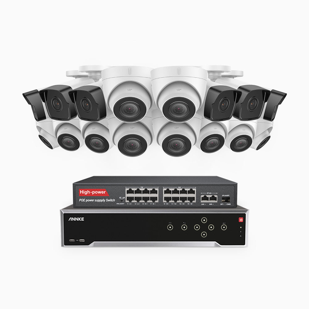 H500 - 3K 32 Channel PoE Security System with 6 Bullet & 10 Turret Cameras, EXIR 2.0 Night Vision, Built-in Mic & SD Card Slot, Works with Alexa, 16-Port PoE Switch Included ,IP67 Waterproof, RTSP Supported