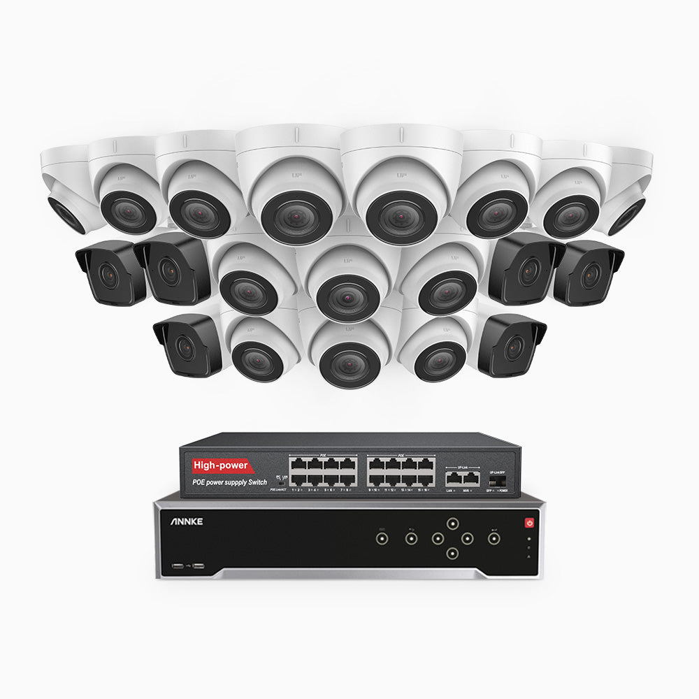 H500 - 3K 32 Channel PoE Security System with 6 Bullet & 14 Turret Cameras, EXIR 2.0 Night Vision, Built-in Mic & SD Card Slot, Works with Alexa, 16-Port PoE Switch Included ,IP67 Waterproof, RTSP Supported