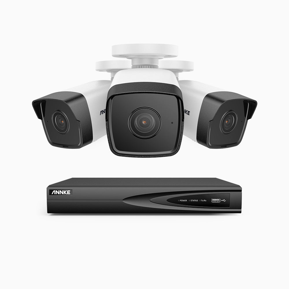 H500 - 3K 4 Channel 3 Cameras PoE Security System, EXIR 2.0 Night Vision, Built-in Mic & SD Card Slot, RTSP Supported ,IP67 Waterproof, RTSP Supported
