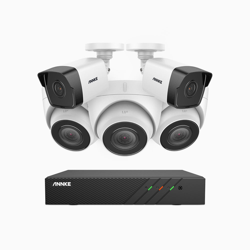 H500 - 3K 8 Channel PoE Security System with 2 Bullet & 3 Turret Cameras, EXIR 2.0 Night Vision, Built-in Mic & SD Card Slot, RTSP Supported, Works with Alexa ,IP67 Waterproof, RTSP Supported