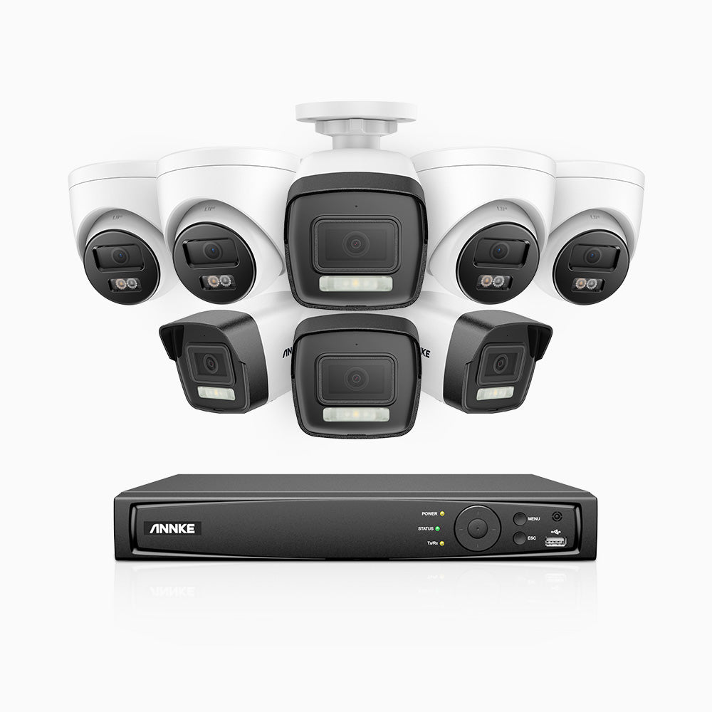 H500P - 3K 16 Channel PoE Security System with 4 Bullet & 4 Turret Cameras, Color & IR Night Vision, 3072*1728 Resolution, f/1.6 Aperture (0.005 Lux), Human & Vehicle Detection, Built-in Microphone,IP67