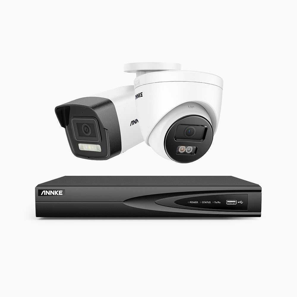 H500P - 3K 4 Channel PoE Security System with 1 Bullet & 1 Turret Cameras, Color & IR Night Vision, 3072*1728 Resolution, f/1.6 Aperture (0.005 Lux), Human & Vehicle Detection, Built-in Microphone,IP67
