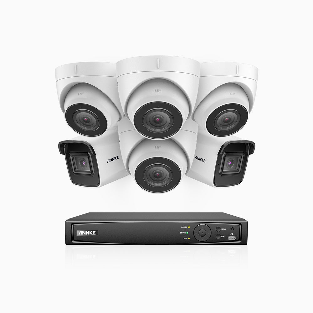 H800 - 4K 16 Channel PoE Security System with 2 Bullet & 4 Turret Cameras, Human & Vehicle Detection, EXIR 2.0 Night Vision, 123° FoV, Built-in Mic, RTSP Supported