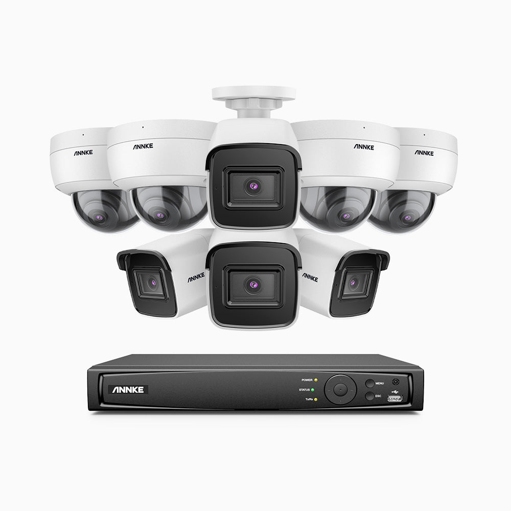H800 - 4K 16 Channel PoE Security System with 4 Bullet & 4 Dome (IK10) Cameras, Vandal-Resistant, Human & Vehicle Detection, EXIR 2.0 Night Vision, 123° FoV, Built-in Mic, RTSP Supported