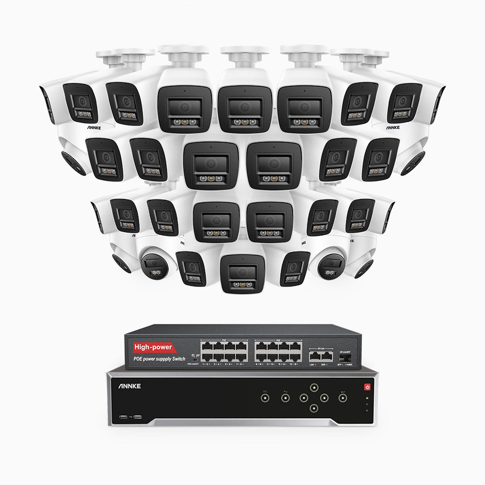 H800 - 4K 32 Channel PoE Security System with 26 Bullet & 6 Turret Cameras, Human & Vehicle Detection, Color & IR Night Vision, Built-in Mic, RTSP Supported, 16-Port PoE Switch Included