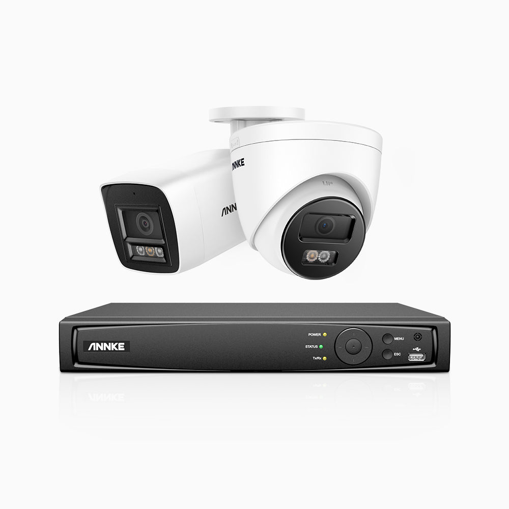 H800 - 4K 4 Channel PoE Security System with 1 Bullet & 1 Turret Cameras, Human & Vehicle Detection, Color & IR Night Vision, Built-in Mic, RTSP Supported