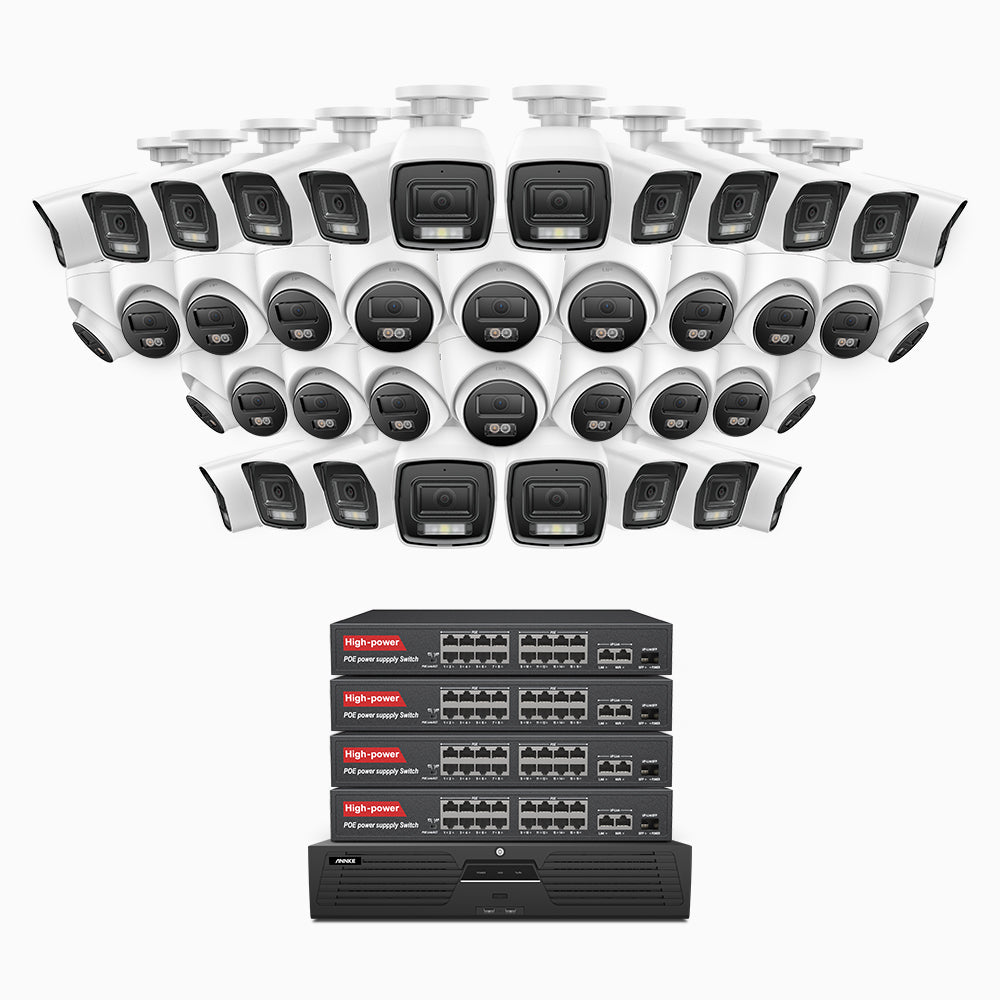 H800 - 4K 64 Channel PoE Security System with 20 Bullet & 20 Turret Cameras, Human & Vehicle Detection, Color & IR Night Vision, Built-in Mic, RTSP Supported, 16-Port PoE Switch Included