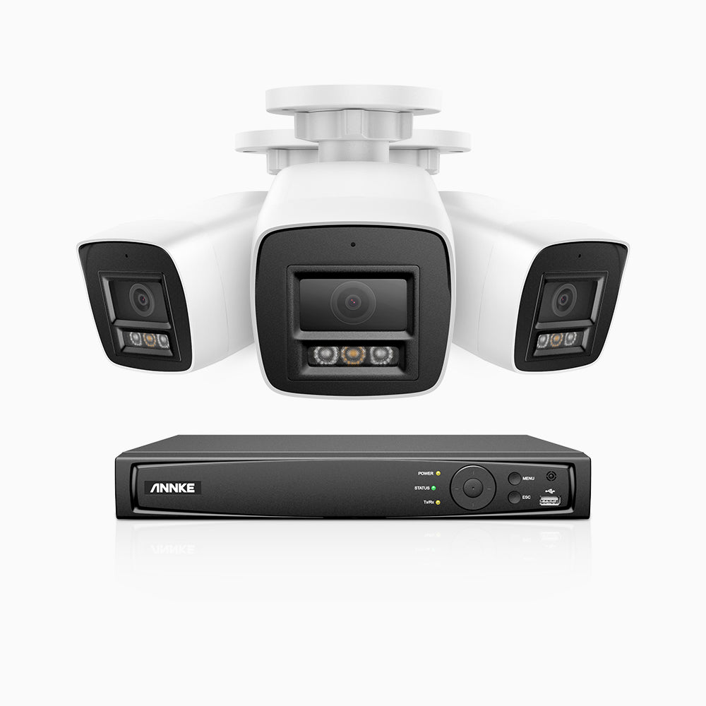 H800 - 4K 8 Channel 3 Cameras PoE Security System, Human & Vehicle Detection, Built-in Mic & SD Card Slot, Color & IR Night Vision, RTSP Supported