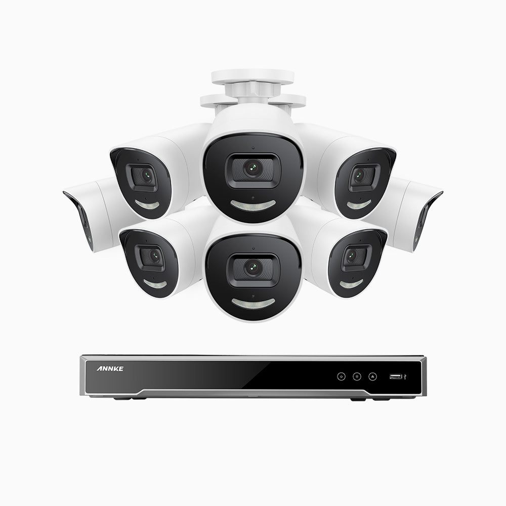 H800X - 4K 16 Channel 8 Cameras PoE Security System, 1/1.8'' BSI Sensor, f/1.6 Aperture (0.003 Lux), Siren & Strobe Alarm,Two-Way Audio, Human & Vehicle Detection, Perimeter Protection, Works with Alexa