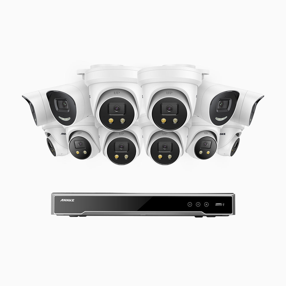 H800X - 4K 16 Channel PoE Security System with 4 Bullet & 8 Turret Cameras, 1/1.8'' BSI Sensor, f/1.6 Aperture (0.003 Lux), Siren & Strobe Alarm,Two-Way Audio, Human & Vehicle Detection, Perimeter Protection, Works with Alexa