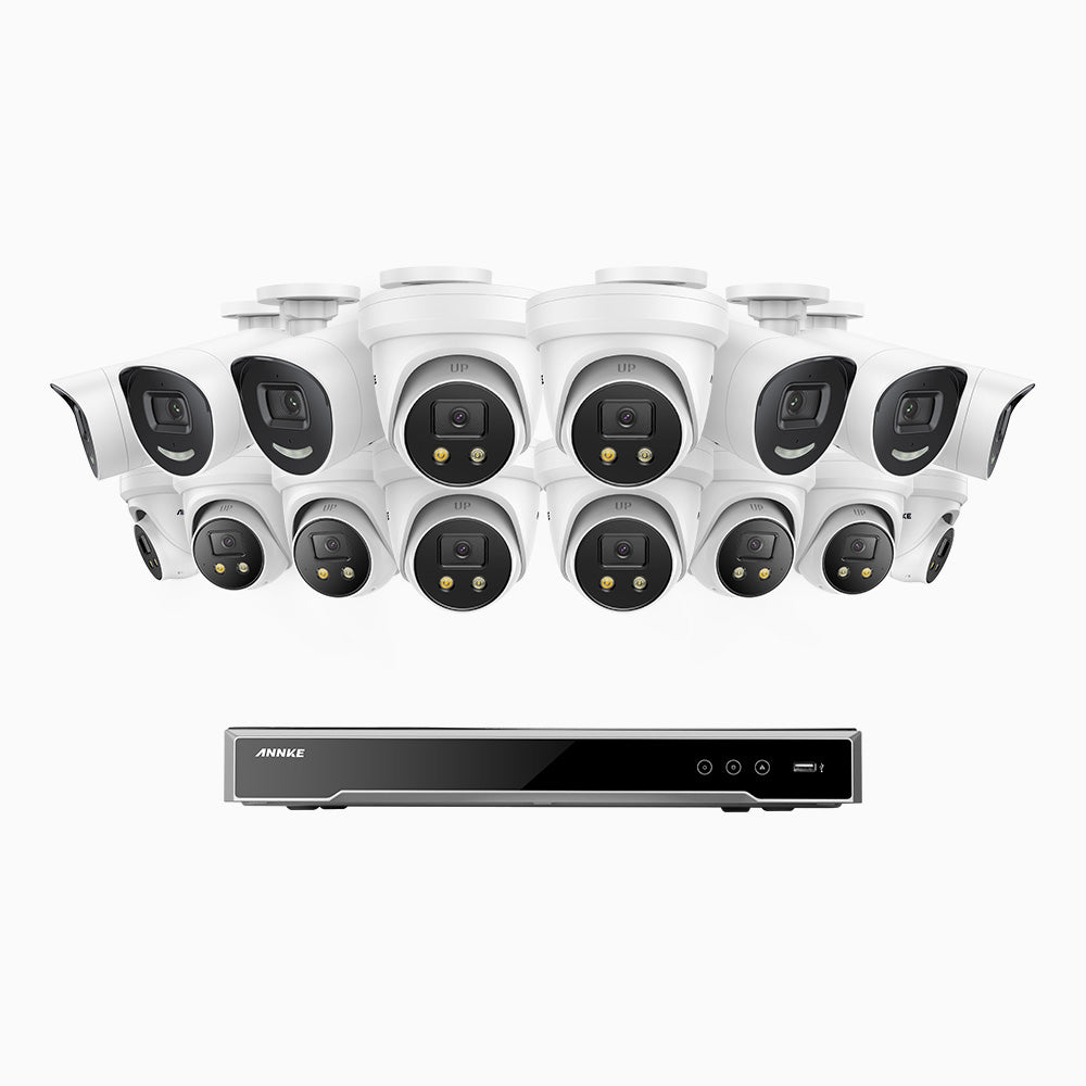 H800X - 4K 16 Channel PoE Security System with 6 Bullet & 10 Turret Cameras, 1/1.8'' BSI Sensor, f/1.6 Aperture (0.003 Lux), Siren & Strobe Alarm,Two-Way Audio, Human & Vehicle Detection, Perimeter Protection, Works with Alexa
