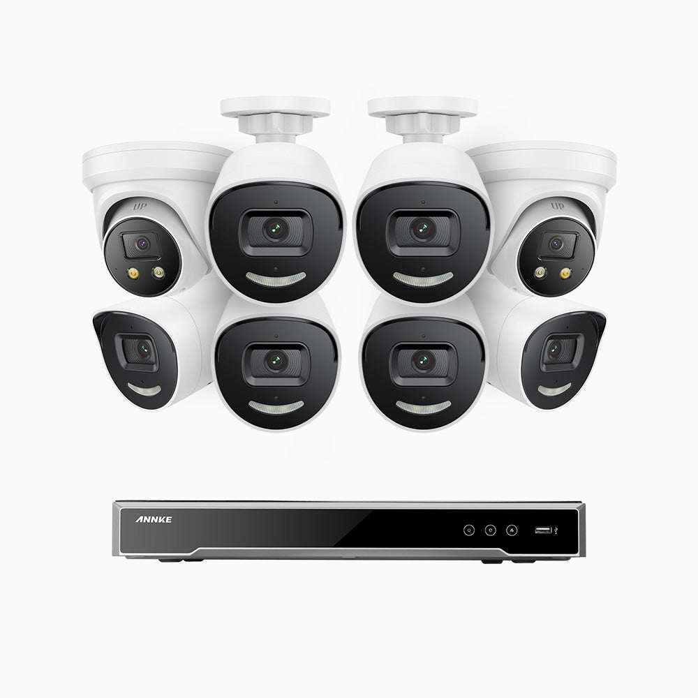 H800X - 4K 16 Channel PoE Security System with 6 Bullet & 2 Turret Cameras, 1/1.8'' BSI Sensor, f/1.6 Aperture (0.003 Lux), Siren & Strobe Alarm,Two-Way Audio, Human & Vehicle Detection, Perimeter Protection, Works with Alexa