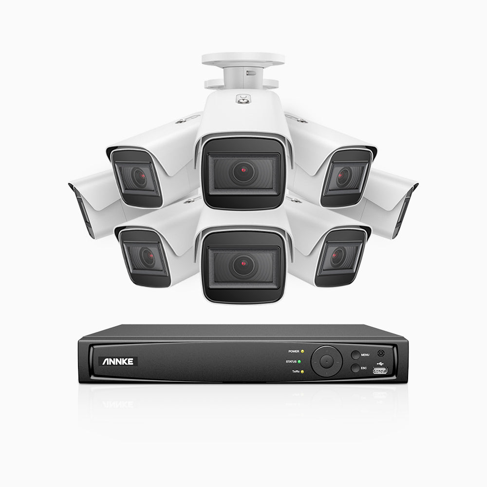 HZ800 - 4K 16 Channel PoE System with 8 pcs Optical Zoom Security Cameras, 1/2.5" Sony STARVIS Sensor, 2.8-12 mm Lens, 164 ft Color Night Vision, Face Detection & Behavior Analysis