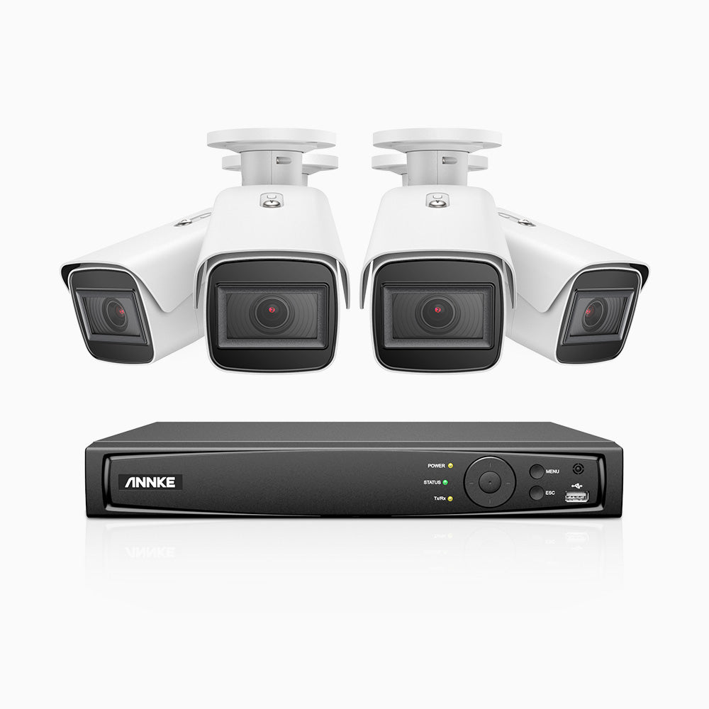 HZ800 - 4K 8 Channel PoE System with 4 pcs Optical Zoom Security Cameras, 1/2.5" Sony STARVIS Sensor, 2.8-12 mm Lens, 164 ft Color Night Vision, Face Detection & Behavior Analysis