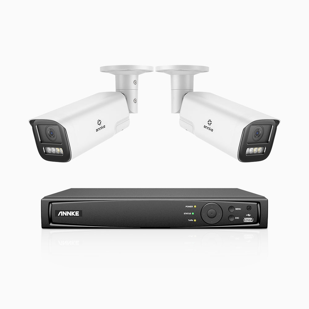 HZ804 - 4K 4 Channel 2 Cameras PoE Security System, 4X Optical Zoom, 2.8 - 12 MM Motorized Varifocal Lens, Smart Dual Light Night Vision, Motion Detection 2.0, Built-in Microphone, Siren & Strobe Alarm, Upgraded Version