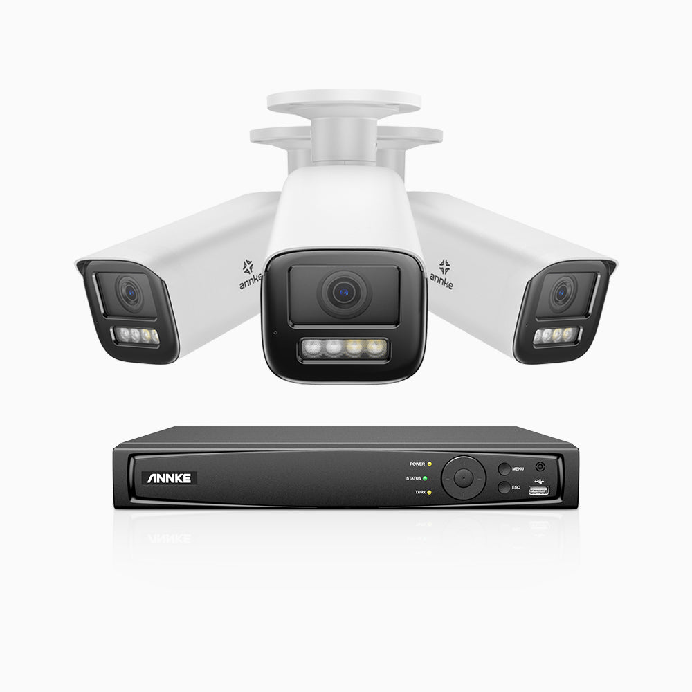 HZ804 - 4K 4 Channel 3 Cameras PoE Security System, 4X Optical Zoom, 2.8 - 12 MM Motorized Varifocal Lens, Smart Dual Light Night Vision, Motion Detection 2.0, Built-in Microphone, Siren & Strobe Alarm, Upgraded Version