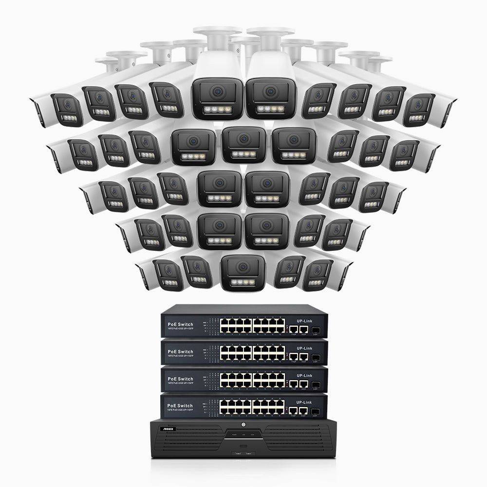 HZ804 - 4K 64 Channel 48 Cameras PoE Security System, 4X Optical Zoom, 2.8 - 12 MM Motorized Varifocal Lens, Smart Dual Light Night Vision, Motion Detection 2.0, Built-in Microphone, Siren & Strobe Alarm, Upgraded Version