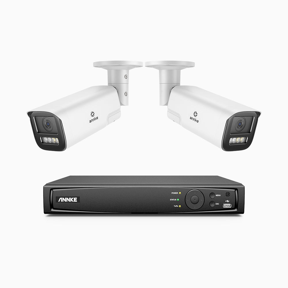 HZ804 - 4K 8 Channel 2 Cameras PoE Security System, 4X Optical Zoom, 2.8 - 12 MM Motorized Varifocal Lens, Smart Dual Light Night Vision, Motion Detection 2.0, Built-in Microphone, Siren & Strobe Alarm, Upgraded Version