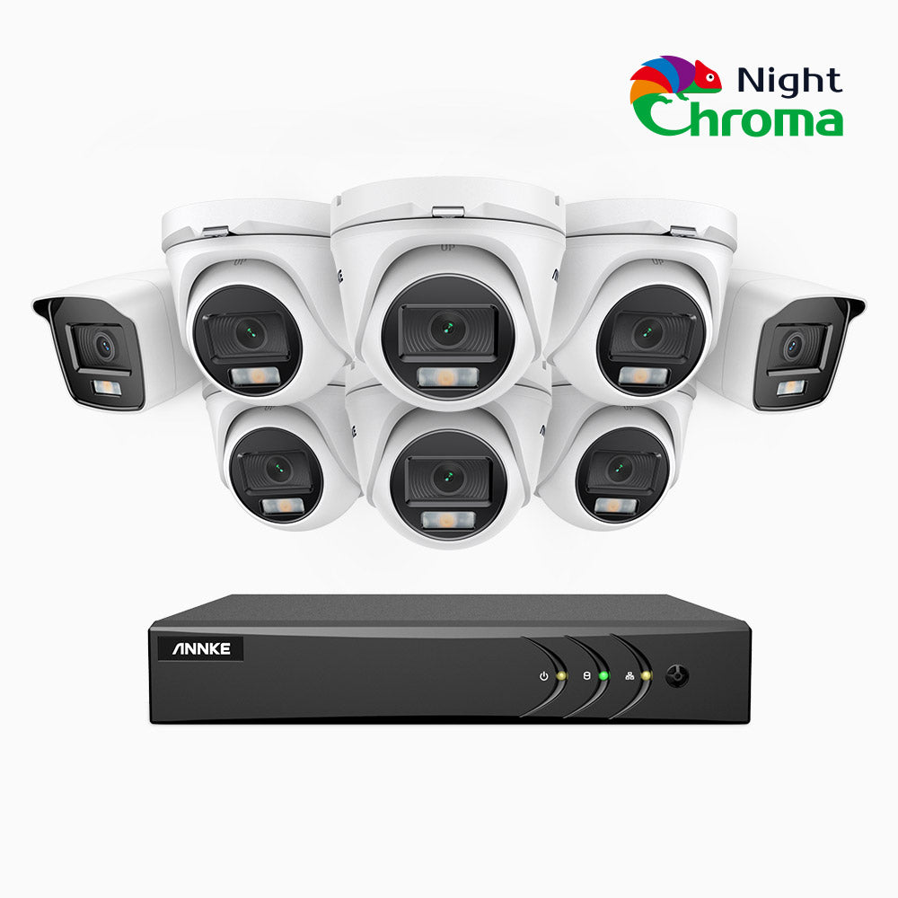 NightChromaTM NAK200 - 1080P 8 Channel Wired CCTV System with 2 Bullet & 6 Turret Cameras, Acme Colour Night Vision, f/1.0 Super Aperture, 0.001 Lux, 121° FoV, Active Alignment