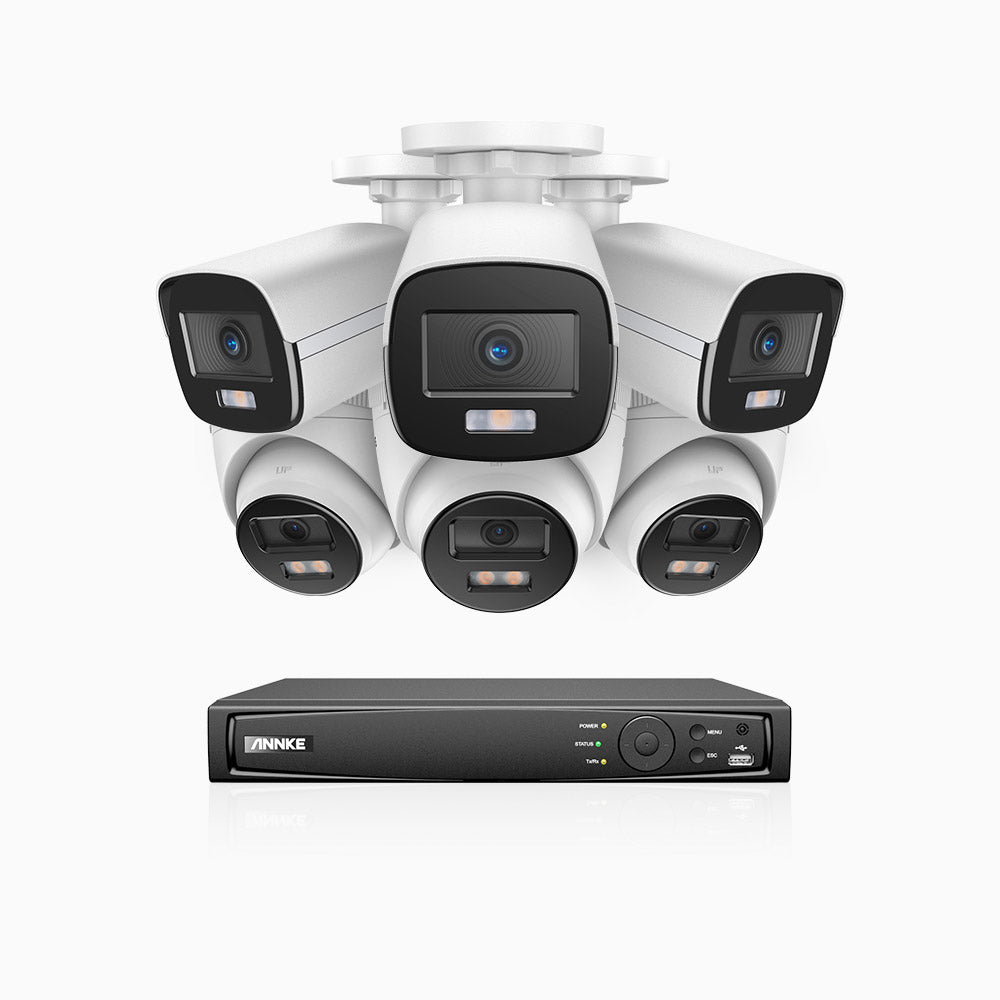 NightChromaTM NCK500 - 3K 8 Channel PoE Security System with 3 Bullet & 3 Turret Cameras, Acme Color Night Vision, f/1.0 Super Aperture, Active Alignment, Built-in Microphone, IP67 , All-Metal Housing