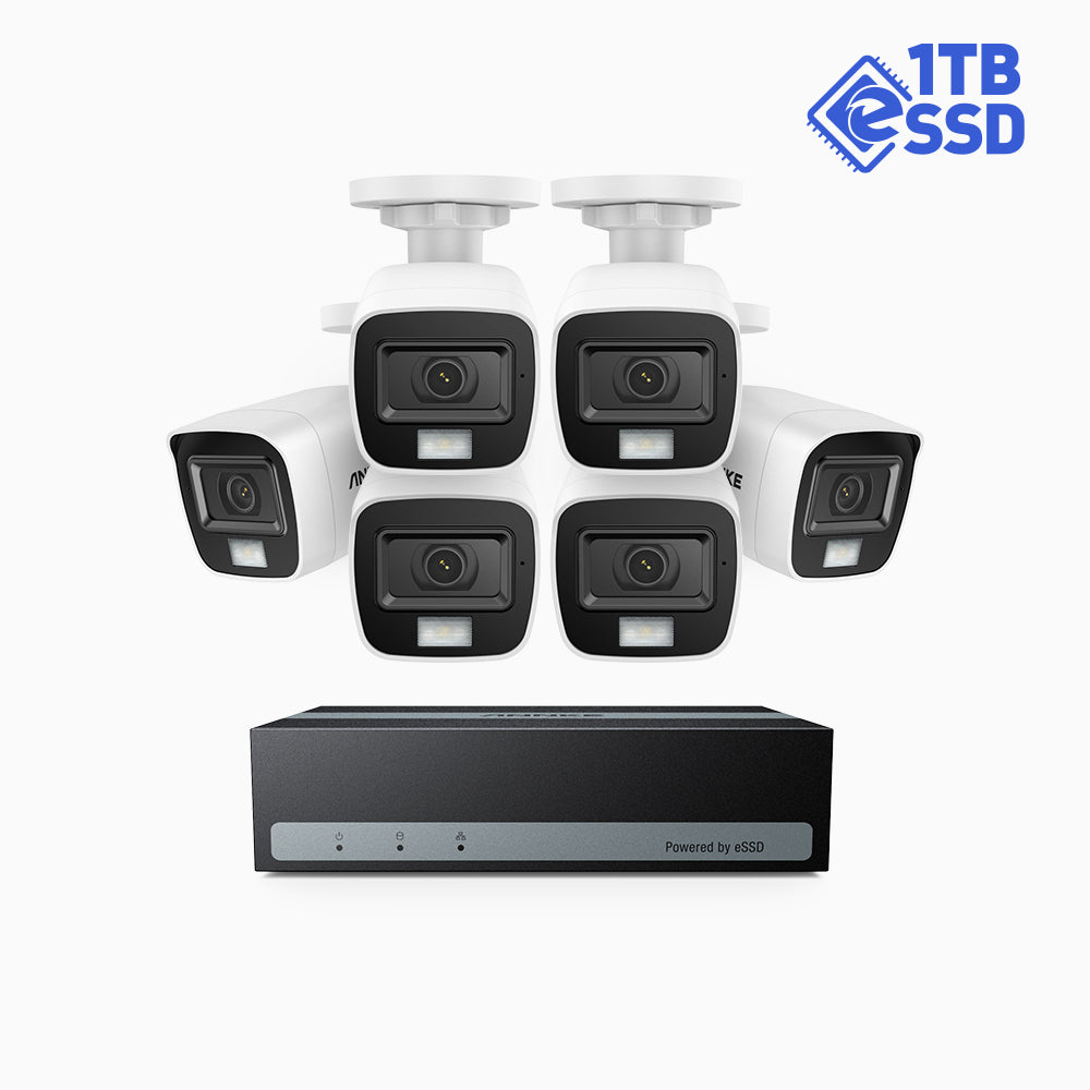 SSDK500 - 3K 8 Channel 6 Dual Light Cameras Wired Security System, Built-In 1024 GB eSSD, Color & IR Night Vision, 3072*1728 Resolution, Up To 2-Week Record, Built-In Microphone, IP67